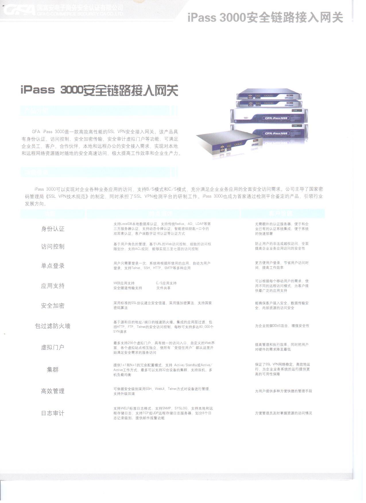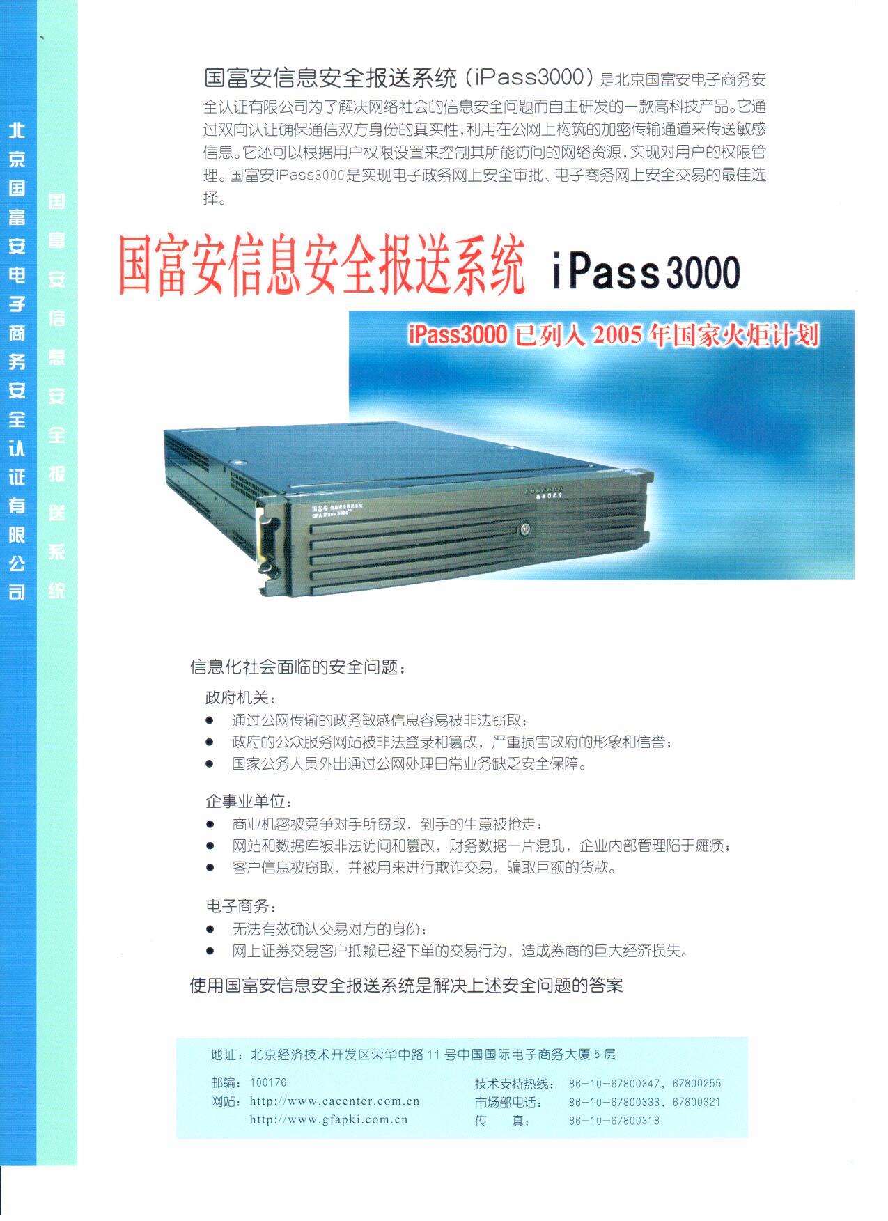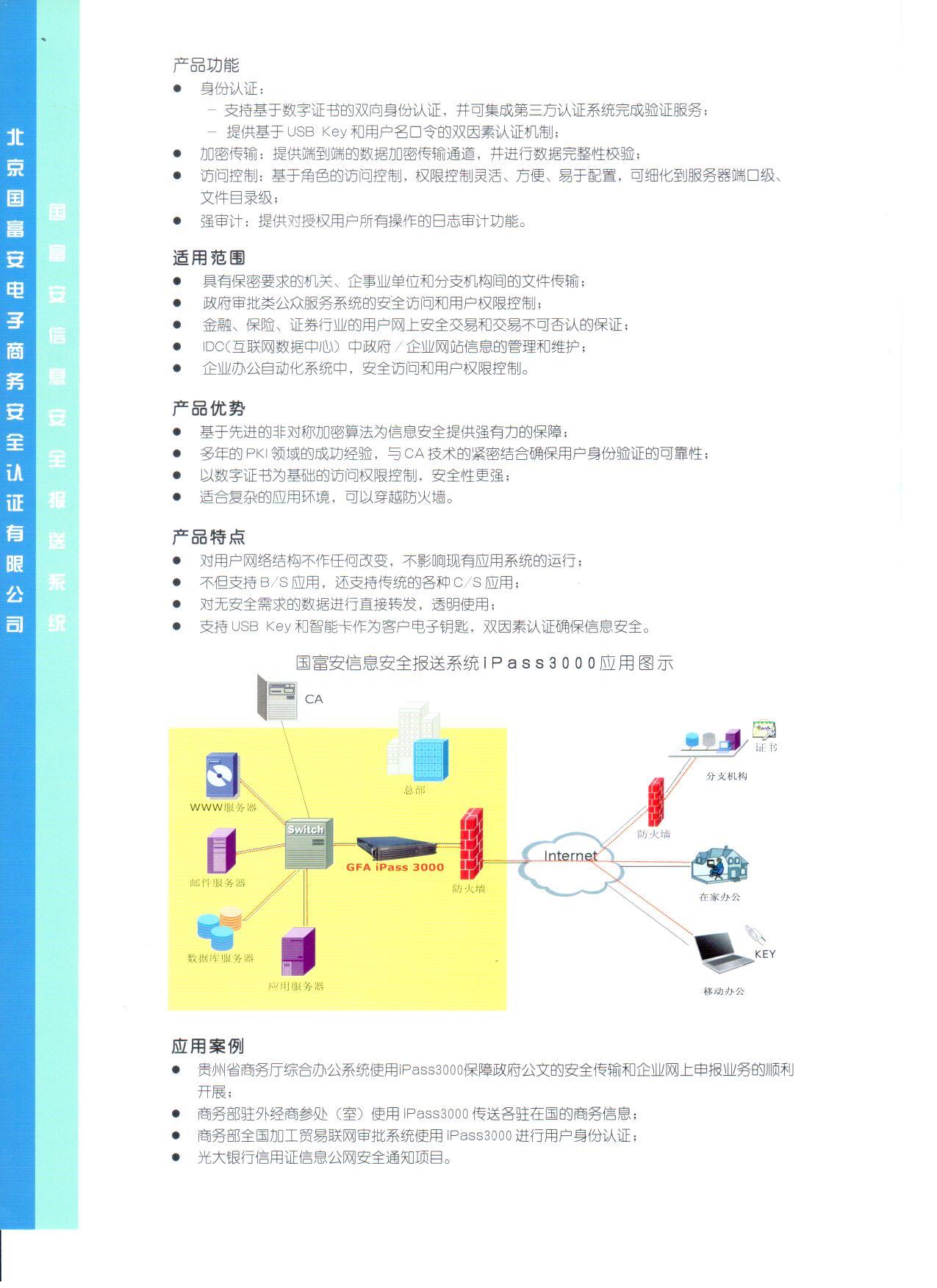 国富安VPN[安全链路接入网关系统V3.0 ipass3000]是北京国富安电子商务安全认证有限公司为了解决网络社会的信息安全问题而自主研发的一款高科技产品。是国密局检验通过的第一例国家级VPN。