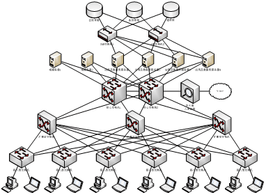 为了满足用户PACS以及大规模数据库访问的应用和网络不间断性运行的要求,我们网络方案为冗余高带宽网络方案。在中心配置两台具有强大的第二、三层交换能力的核心交换机,处理整个网络交换和路由,并通过千兆聚合技术连接各分中心汇聚和接入交换机。汇聚层到接入层采用双备份千兆连接,接入层到桌面采用百兆连接。在核心交换机与Internet之间配置防火墙和入侵检测设备。