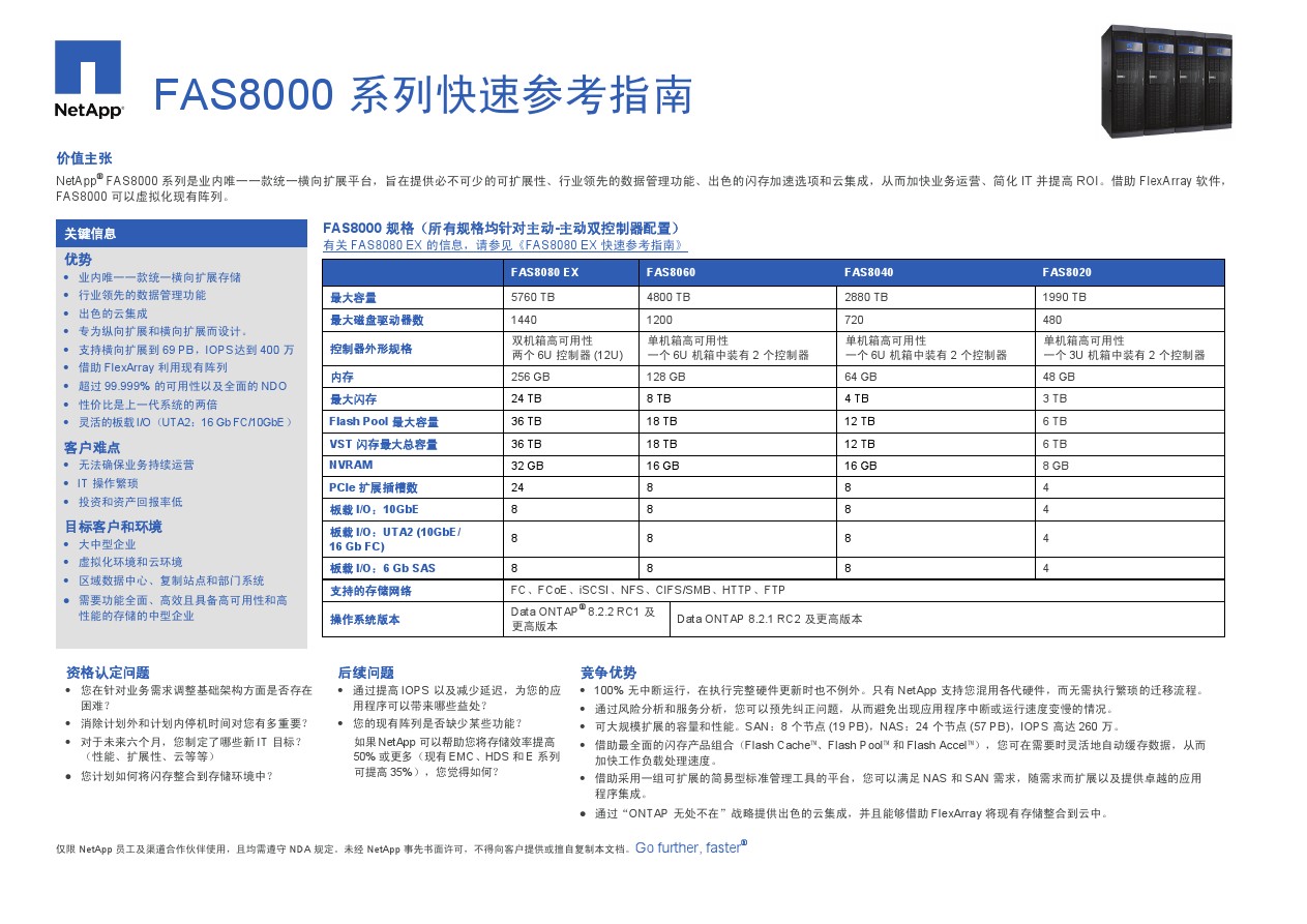 所有NetApp FAS阵列都是基于Data Ontap以及集群化Data Ontap操作系统构建的。